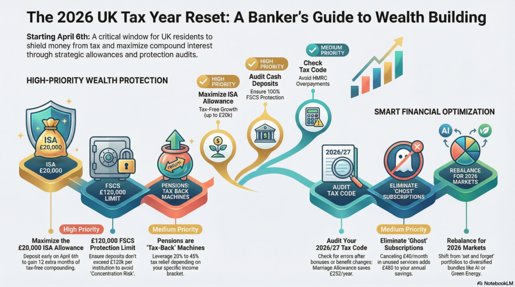 The start of a new tax year in the UK (6 April) is the single best opportunity to reset your finances. After 25 years in banking, I’ve seen that the difference between “savers” and “wealth-builders” is often just 48 hours of planning in April.