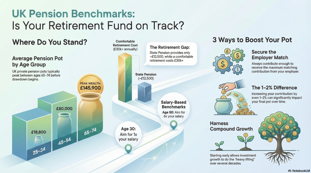 The truth is that pension savings vary widely depending on age, income, and career history. However, looking at national statistics can give a useful benchmark for understanding whether you are on track.