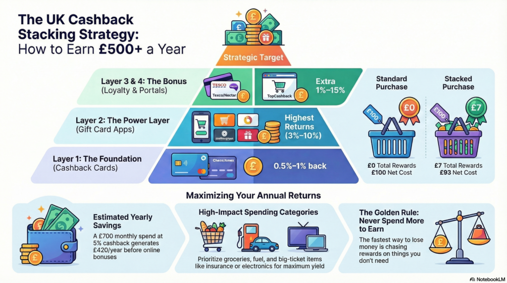 Cashback Stacking Strategy Guide in the UK (2026) – How to Turn Everyday Spending Into £500 a Year