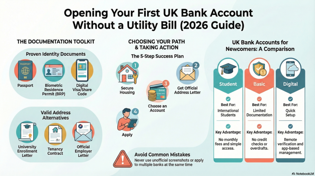 Opening a UK bank account can feel frustrating when you’re new to the country — especially if you’re asked for a utility bill that you simply don’t have yet.