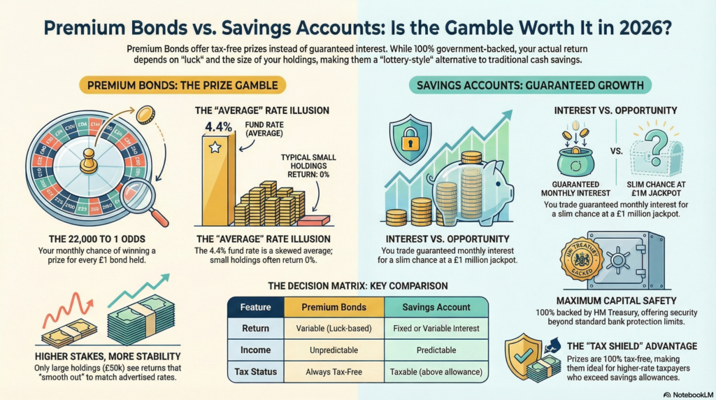 • Higher Rate Taxpayer (£500 Allowance): You hit the tax limit much faster. Verdict: Premium Bonds become a “Tax Shield.” This is where the NS&I safety starts to outshine the competition.