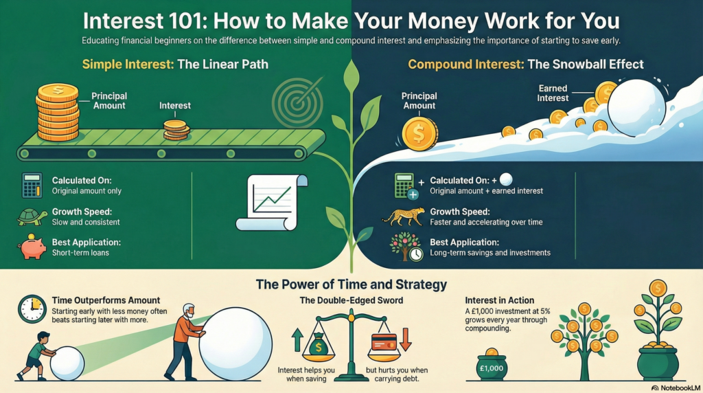 In this guide, we’ll explain simple interest, compound interest, and the power of interest in plain English — no Maths background needed.